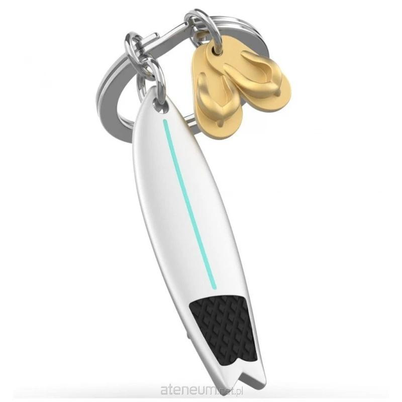 Brelok do kluczy w kształcie deski surfingowej i klapek to świetny, wakacyjny dodatek, który przywodzi na myśl plażę, morze i letnią swobodę.