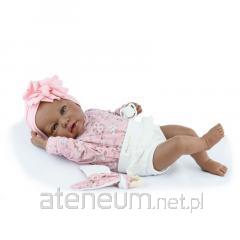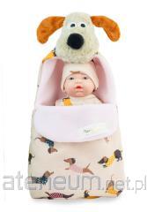 Niewielki, 35 cm, uroczy bobas w ślicznej biało-różowej sweterkowej piżamce i opasce to wyjątkowa wersja popularnego modelu Betty, zaprojektowanego i ręcznie wykonanego w Hiszpanii w firmie Marina & Pau. W komplecie znajduje się ciepły przytulany, miękki śpiworek z pluszowymi pomponikami.