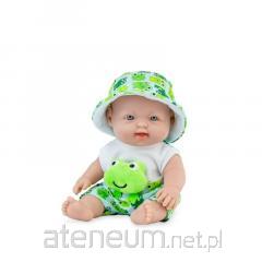Niewielki, 28 cm, uroczy bobas w ślicznym stroju w zielone żabki to oryginalna wersja popularnego modelu Betty, zaprojektowanego i ręcznie wykonanego w Hiszpanii w firmie Marina & Pau. Urzeka słodki wyraz twarzy, wyrzeźbione na główce włoski niemowlęce oraz jasnoniebieskie, ręcznie malowane otwarte oczy. Podkreślone rysy twarzy, wyrzeźbione linie papilarne, dołeczki na piąstkach czy fałdki pod kolanami sprawiają, że bobas wygląda jak żywy. Dziewczynka została wykonana z gładkiego, przyjemnego w dotyku, bezpiecznego winylu. Ma zaznaczoną płeć. Proponowana dla dzieci w wieku od 3 lat, świetnie sprawdza się także podczas zabawy w kąpieli. Nie posiada włosów ani rzęs, brwi są lekko zaznaczone. Ruchome rączki, nóżki oraz główka sprawiają, że można ułożyć lalę w różnych pozycjach. Betty siedzi samodzielnie.