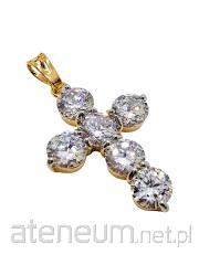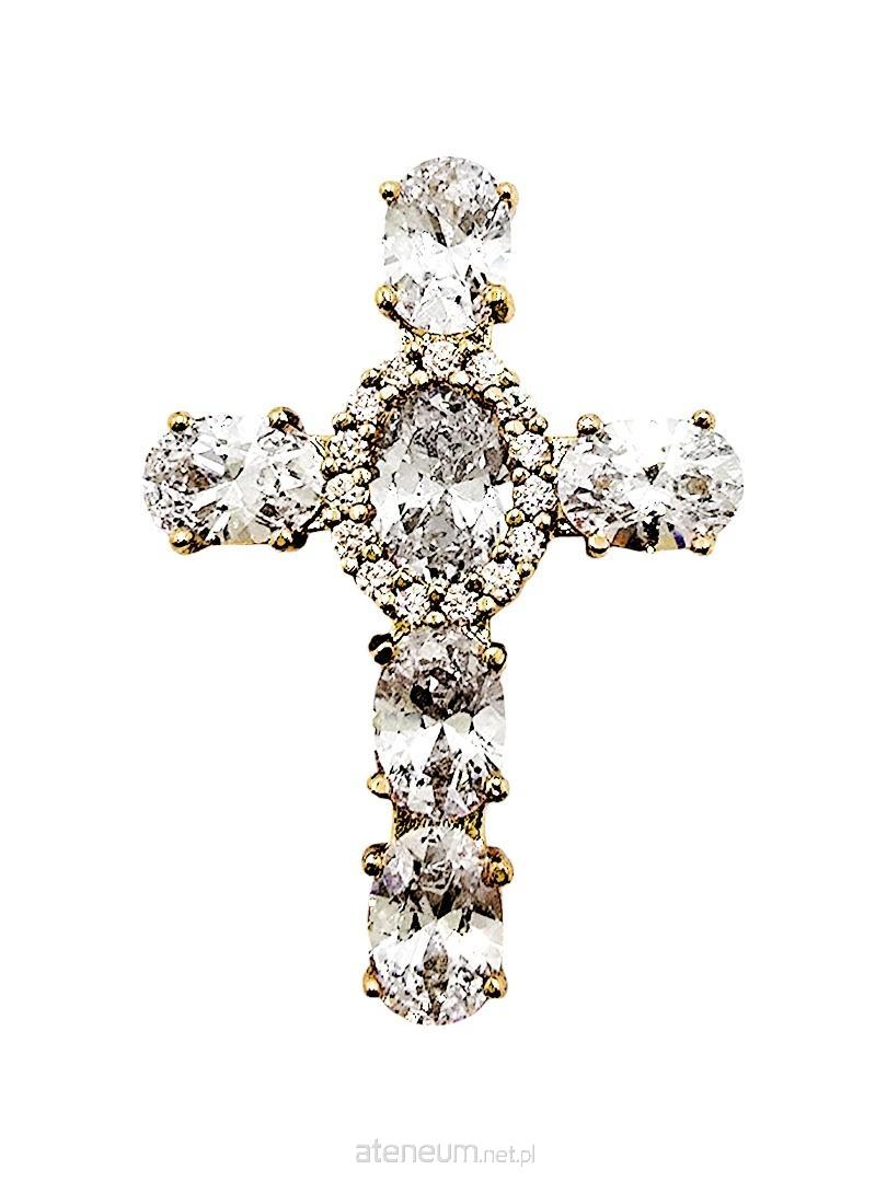 Kompozycja opiera się na dużych, lśniących cyrkoniach osadzonych w ramionach krzyża, jednak to centrum zawieszki przyciąga największą uwagę. Środkowa, główna cyrkonia została dodatkowo otoczona wieńcem mniejszych kamieni, tworząc efektowną rozetę, która potęguje blask i nadaje całości luksusowy charakter. Niezwykłym i rzadko spotykanym rozwiązaniem jest sztywny uchwyt na łańcuszek. To nietypowe wykończenie sprawia, że krzyż tworzy z łańcuszkiem spójną linię i zawsze nienagannie prezentuje się na dekolcie, nie zmieniając swojego położenia.