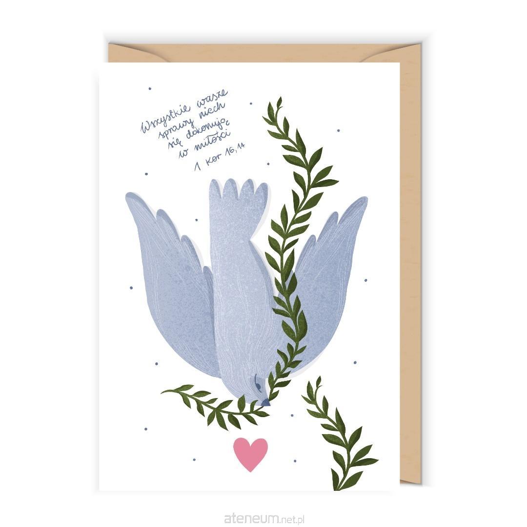 Otwierana kartka, pusta w środku, wykonana na papierze (z certyfikatem EFC) z wyraźnie widoczną fakturą. W zestawie ekologiczna koperta.