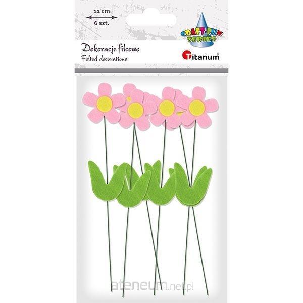 Dekoracje filcowe kwiaty 3D na druciku 25x130mm różowe 6szt.