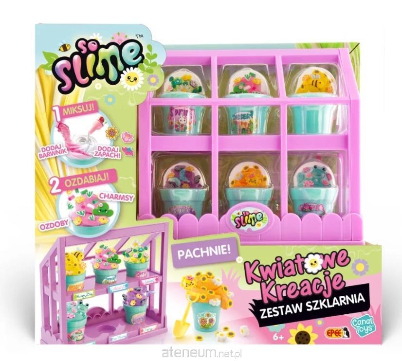 Pozwalają na tworzenie wyjątkowych kompozycji kwiatowych ze slajmu, który można zabarwić jednym z 6 kolorów. To Twój własny kwiatowy ogród w zasięgu ręki! Zestaw Szklarnia umożliwia stworzenie 6 uroczych doniczek z kwiatowymi ozdobami, które umieszczone są w pięknej, przejrzystej szklarni. Dzięki temu Twój miniaturowy ogród zawsze wygląda bajecznie. Każdy slime może mieć inny kolor i zapach, a dodając do niego błyszczące cekiny, brokat, zabawne zawieszki i ozdoby, stworzysz prawdziwy kwiatowy świat w miniaturze.