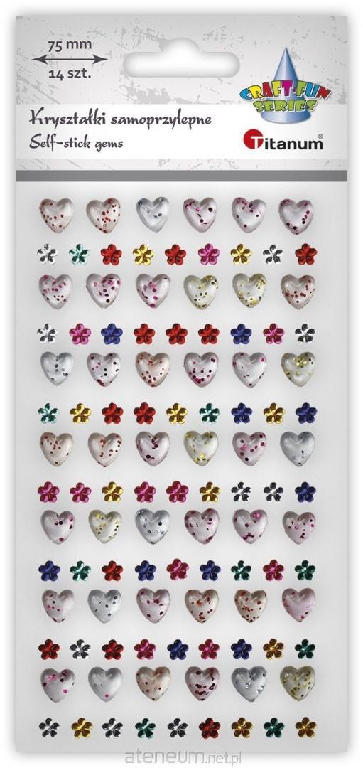 Kryształki samoprzylepne na pasku 75mm mix serca 90x100mm przezroczyste z brokatem, kwiaty O6mm mix kolorów 14szt.