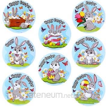 Naklejki papierowe na taśmie 8 wzorów Wielkanoc O25mm 500szt.