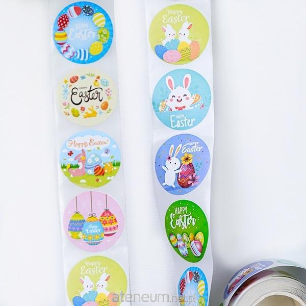 Naklejki papierowe na taśmie 8 wzorów Wielkanoc O25mm 500szt.