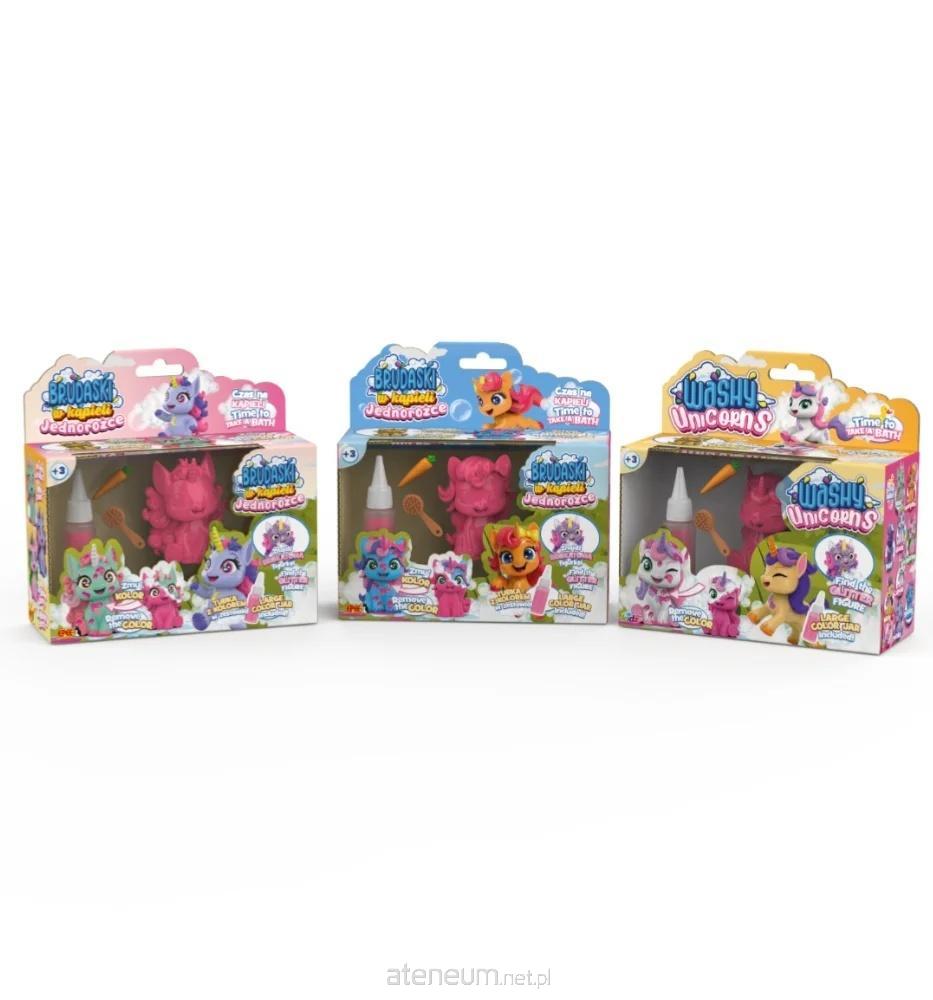 Zawartość opakowania: 1 figurka jednorożca, 1 tubka z różowym błotkiem, 1 akcesorium