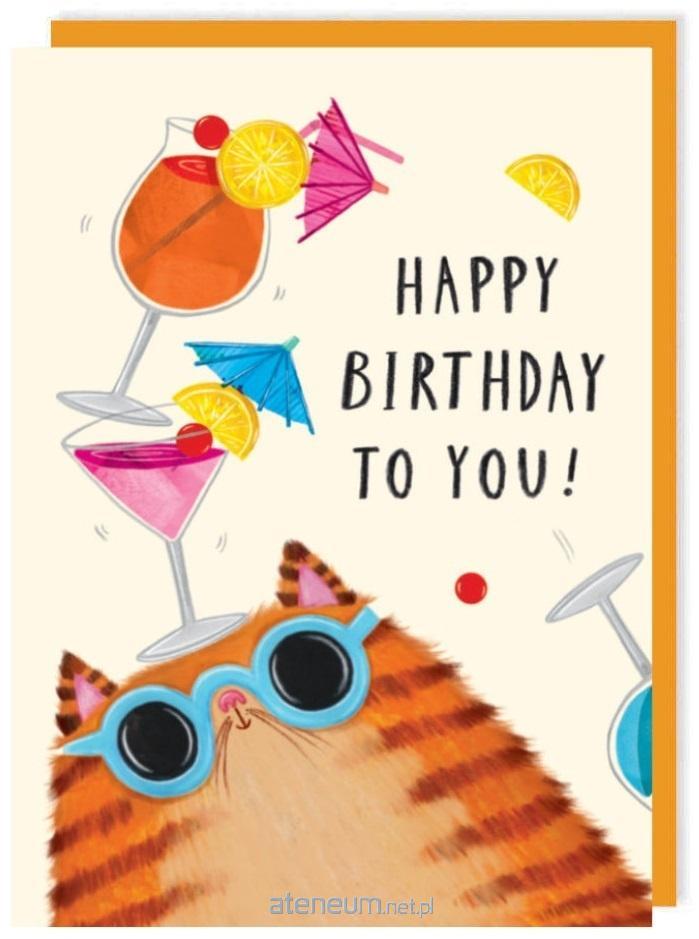 Karnet kwadrat 006 Urodziny Kot w okularach