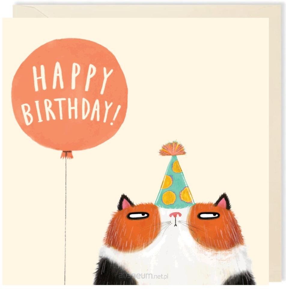 Karnet kwadrat 009 Urodziny Kot z żółtym balonem