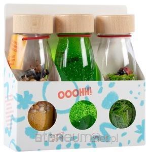 Zestaw składa się z 3 butelek sensorycznych: Float - Zielonej, obserwacyjnej - Farma oraz dźwiękowej - Biedronki.