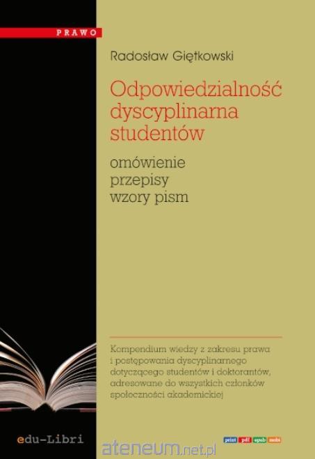 Publikacja jest opracowaniem, które w kompleksowy i przystępny sposób przedstawia problematykę odpowiedzialności dyscyplinarnej studentów, której prawidłowa realizacja jest niezbędna do skutecznego wykonywania przez uczelnię jej zadań i do właściwego funkcjonowania społeczności akademickiej.