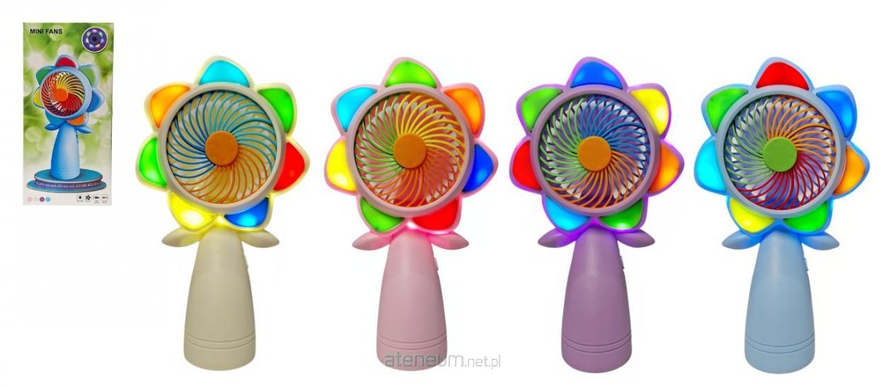 Wiatraczek z podświetleniem LED w kształcie kwiatka idealnie sprawdzi się w upalne dni. Włączając go choć przez chwilę będzie można poczuć ulgę i wiatr we włosach. Produkt działa na baterię litową akumulator, załączona do zabawki. Produkt występuje w kilku wersjach kolorystycznych, wybierany losowo. Cena dotyczy jednej sztuki. Zabawka zapakowana w kartonowe pudełko. Podane wymiary są wymiarami opakowania.
