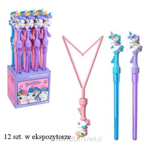 Zestaw baniek mydlanych pod postacią kolorowego miecza. Miecz zakończony figurką jednorożca. Posłuży dzieciom do tworzenia dużych baniek. Towar dostępny w kilku wersjach kolorystycznych, wybierany losowo. Cena dotyczy jednej sztuki. Produkt dla dzieci od 3 lat.
