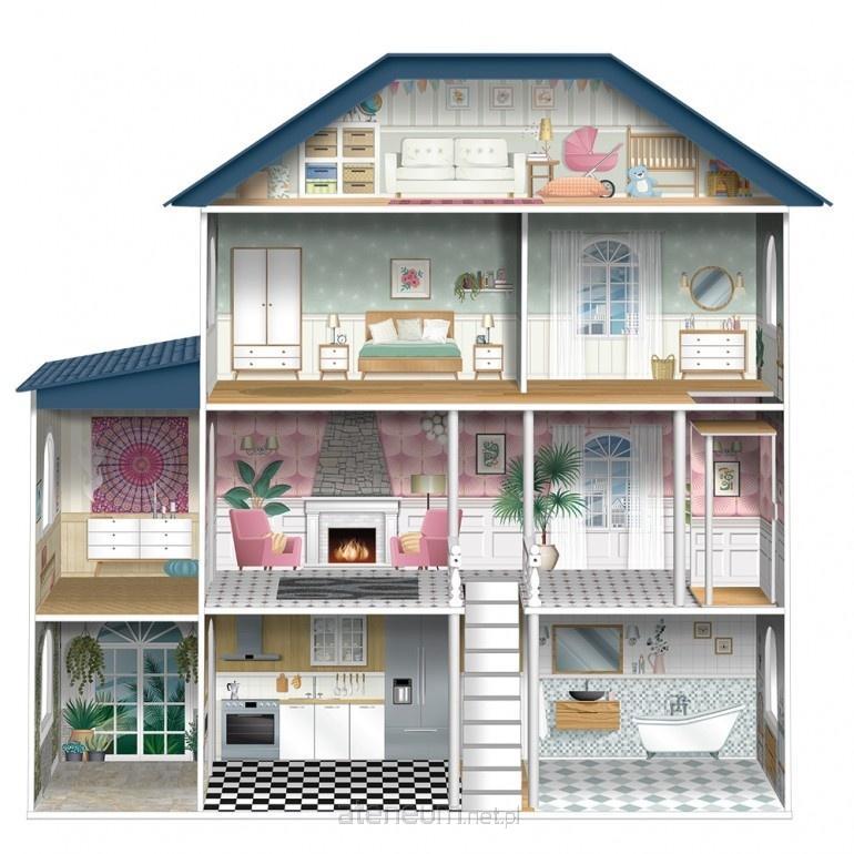 Rezydencja Marzeń w rozmiarze XL - 4 piętra pełne przygód! Odkryj niezwykły, drewniany dom dla lalek, który zachwyca nie tylko skalą, ale i unikalnym designem. Ta imponująca konstrukcja o wysokości ponad 130 cm oferuje cztery kondygnacje kreatywnej zabawy. Wnętrza ozdobiono szczegółowymi nadrukami, które nadają każdemu pomieszczeniu niepowtarzalny charakter. W zestawie znajdziesz aż 17 stylowych akcesoriów i mebelków, które pozwolą dziecku na dowolną aranżację przestrzeni. To jakość, którą widać w każdym detalu. Wymiary domku: 130,3 x 36 x 134,5 cm.