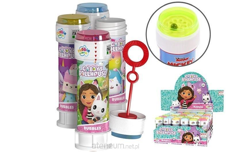 bańki mydlane z postaciami bajek Disney'a, na każdej nakrętce znajduje się gra - labirynt z piłeczką, ilość płynu w opakowaniu: 60 ml, wym. bańki: 11,5 x 3,5 cm., 3+