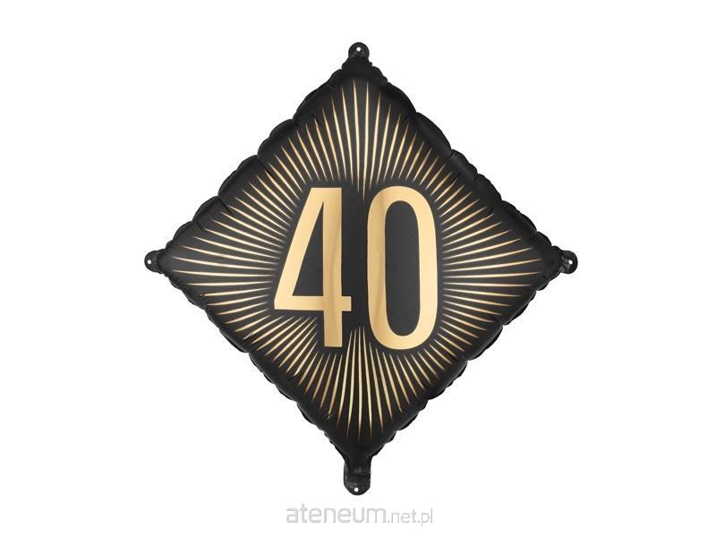 Balon foliowy w kolorze czarnym ze złotym napisem 40 Wymiary przed napompowaniem ok. 54 x 54 cm, wymiary po napompowaniu ok. 46 x 46 cm Do napompowania powietrzem i helem. Zestaw zawiera słomkę.
