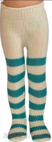 Rajstopy dla lalek 32cm kremowe w zielone paski