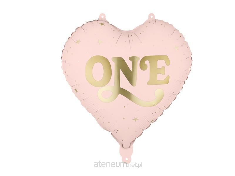 Balon foliowy Serce \\'\\'One\\'\\', w kolorze jasnoróżowym ze złotym napisem. Wymiary przed napompowaniem ok. 45 cm (18\\'\\'), wymiary po napompowanie ok. 35 cm (14\\'\\'). Do napompowania powietrzem i helem. Zestaw zawiera słomkę.