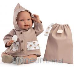 Realistycznie wyglądający, winylowy bobas z miękkim brzuszkiem posiada wyrzeźbione włoski oraz delikatnie malowane brwi, usta, paznokcie i fałdki. Wysokiej jakości ubranko z łatwością można zdjąć. W komplecie znajduje się także czapeczka, specjalny smoczek magnetyczny na satynowej tasiemce oraz miękki śpiworek.