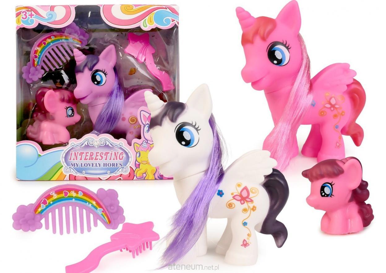 3 wzory, w zestawie: 2 kucyki, grzebień, szczotka, Funkcje: możliwość czesania grzywy kucyka, ruchoma głowa, Wym. opak. 15,2 x 16 x 5,5 cm, Wiek:3+