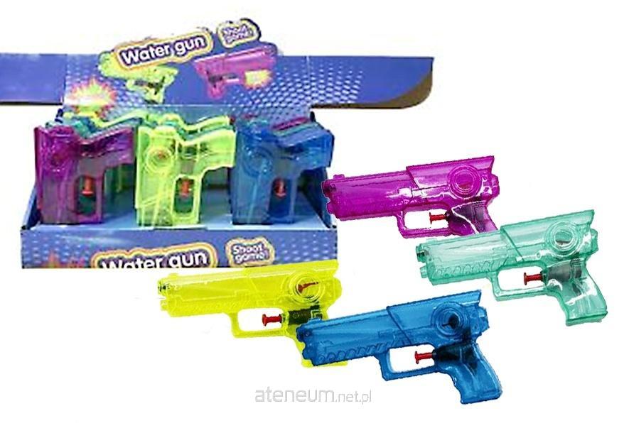 Opis: 12 szt/disp, 4 kolory, wym. pistoletu: 15 x 9 cm, nie wymaga baterii, wym. disp.: 28 x 15,5 x 13 cm, 3+