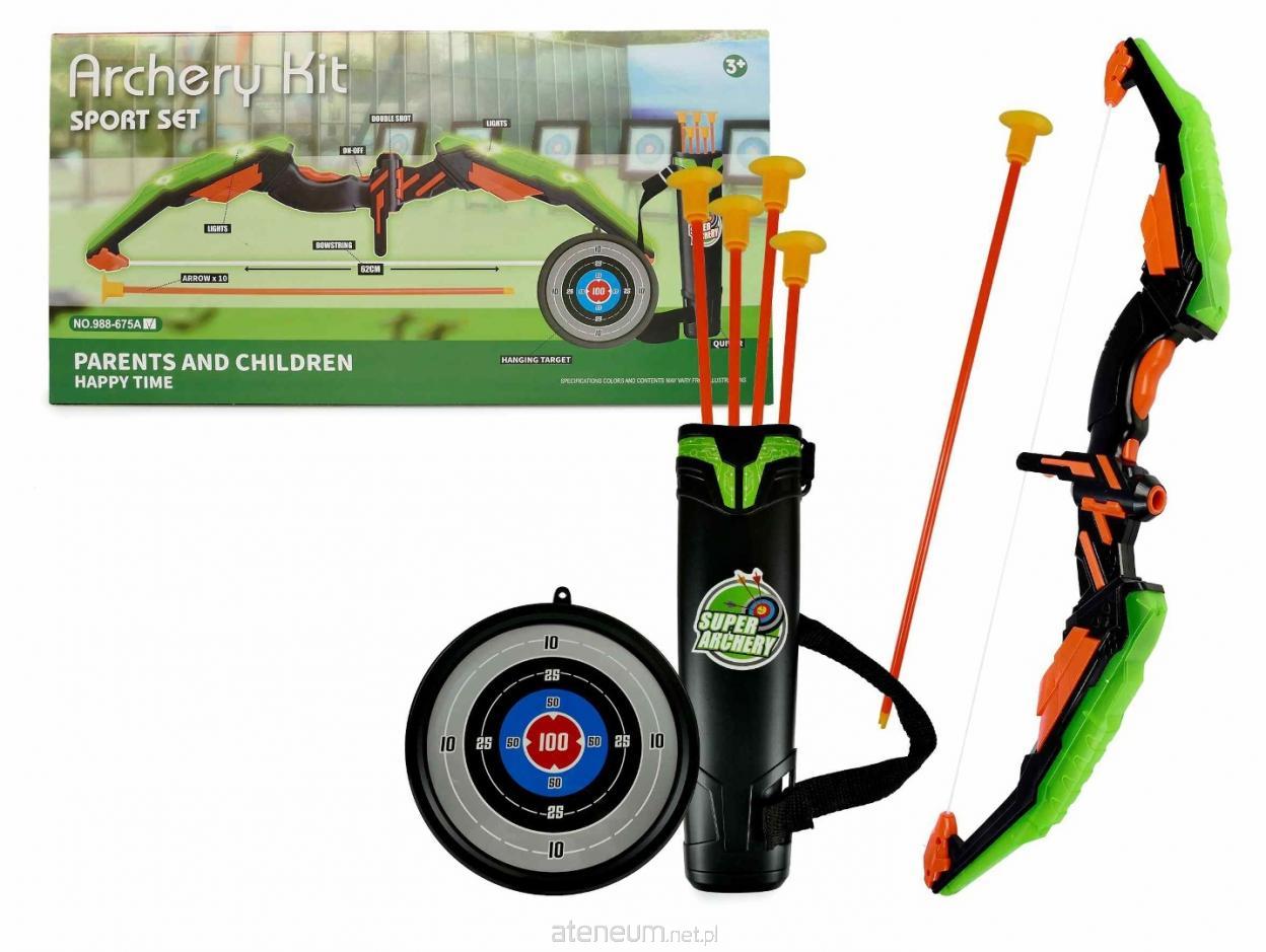 W zestawie: łuk dł.: 62 cm; 10 strzał, tarcza, kołczan; funkcje: zabawka umożliwia wystrzeliwanie strzał na odległość, podświetlane elementy łuku; baterie: 2 x AA 1,5 V niedołączone; 3+