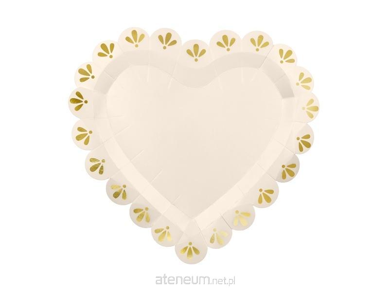Talerzyki w kształcie serca w kolorze kremowo-złotym, wymiary ok. 26x24.5 cm.(1 op. / 6 szt.)