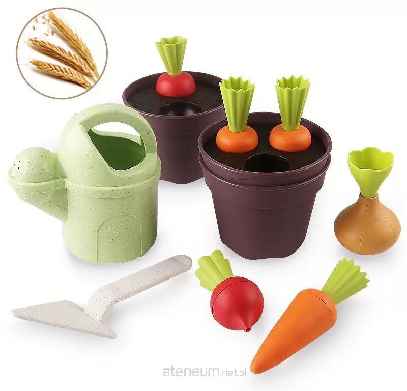 W zestawie: doniczka wys. 7,3 cm, konewka wys. 11 cm, łopatka dł.: 15 cm, cebula, burak, marchewka, wkład do doniczki; 3+