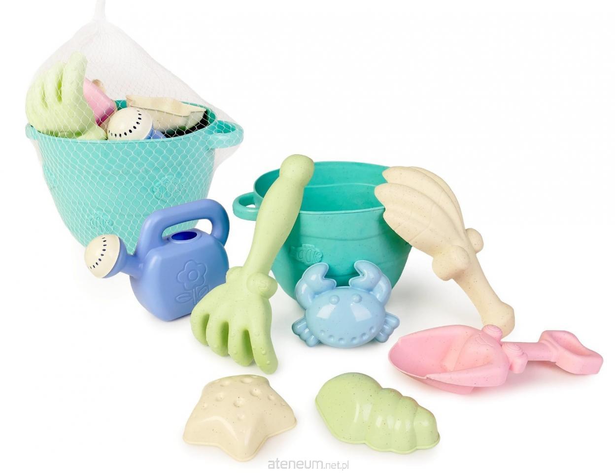 W zestawie: wiaderko z dwoma uchwytami wysokość: 11,5 cm; grabki długość: 17,7 cm; łopatka w kształcie muszli długość: 17,7 cm; łopatka klasyczna długość: 18 cm; 3 foremki: gwiazdka 7,5 cm, muszla 9 cm, krab 9 cm; konewka wysokość: 9,5 cm; funkcje: kopanie i przenoszenie piasku, formowanie kształtów i wzorów, zabawa z wodą za pomocą konewki lub wiaderka; wym. opakowania: 20 x 21 x 20 cm; 3+