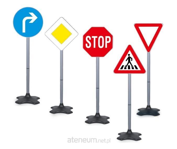 W zestawie: 5 znaków drogowych wys. 80 cm: nakaz skrętu w prawo, droga z pierwszeństwem, stop, ustąp pierwszeństwa, przejście dla pieszych; wym. opak.: 53 x 27 x 13 cm, 6+