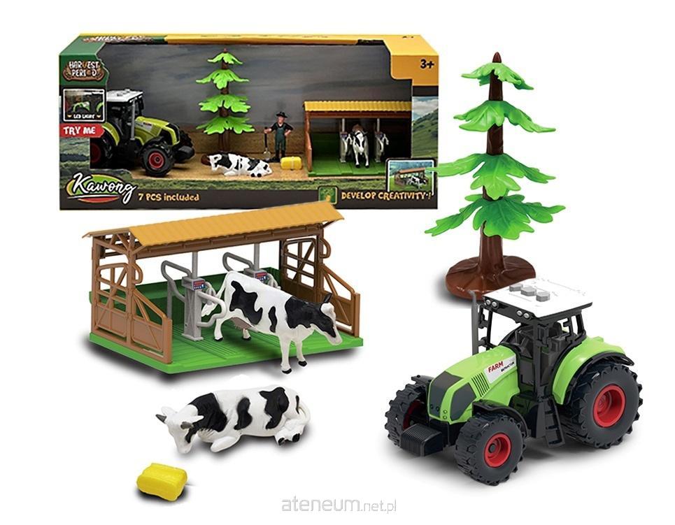 W zestawie: traktor, 2 figurki krów, obora, figurka rolnika, drzewo, kostka słomy; funkcje: efekty świetlne i dźwiękowe przy traktorze; wym. opak.: 44 x 12,5 x 18 cm; baterie: 3 x AG13 (traktor) dołączone; 3+