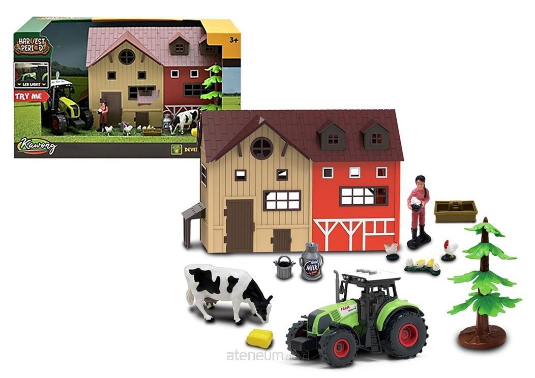 W zestawie: stodoła wym. 27 x 22 x 14 cm; traktor wym. 15 x 9 x 9 cm, figurka rolniczki, krowa, kura, kogut, podstawka z 4 kurczakami, drzewo, bańka na mleko, wiaderko, korytko, kostka słomy/paszy; funkcje: efekty świetlne i dźwiękowe przy traktorze; wym. opak.: 41,5 x 24 x 21 cm; baterie: 3 x AG13 (traktor) dołączone; 3+