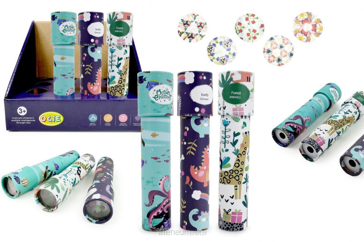12 szt/display, dł. kalejdoskopu 19,5 cm, 3 modele do wyboru, funkcje: obracając zabawkę, można obserwować przesuwające się barwne kształty i wzory, zabawka wykorzystuje światło otoczenia do tworzenia efektów wizualnych, dzięki czemu wzoru są kolorowe, wyraźne i dynamiczne, wym. disp: 23,5 x 18 x 20 cm, 3+