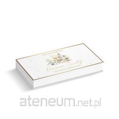 Karne w formacie A5, złocony i tłoczony, teksy życzeń w środku. Wydrukowany na wysokiej jakości papierze. W zestawie koperta.