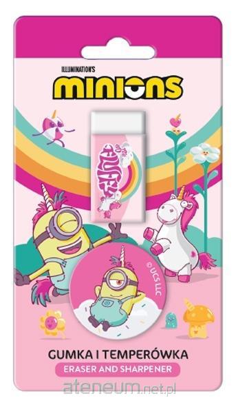 Zestaw z motywem MINIONKI zawiera gumkę oraz temperówkę.