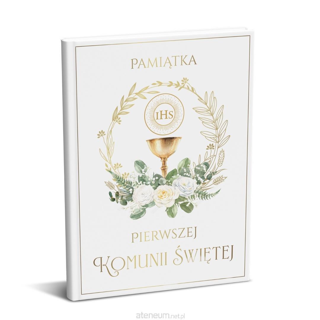 Książeczka z Okazji I Komunii Świętej w formacie A5 wraz z kopertą w środku.