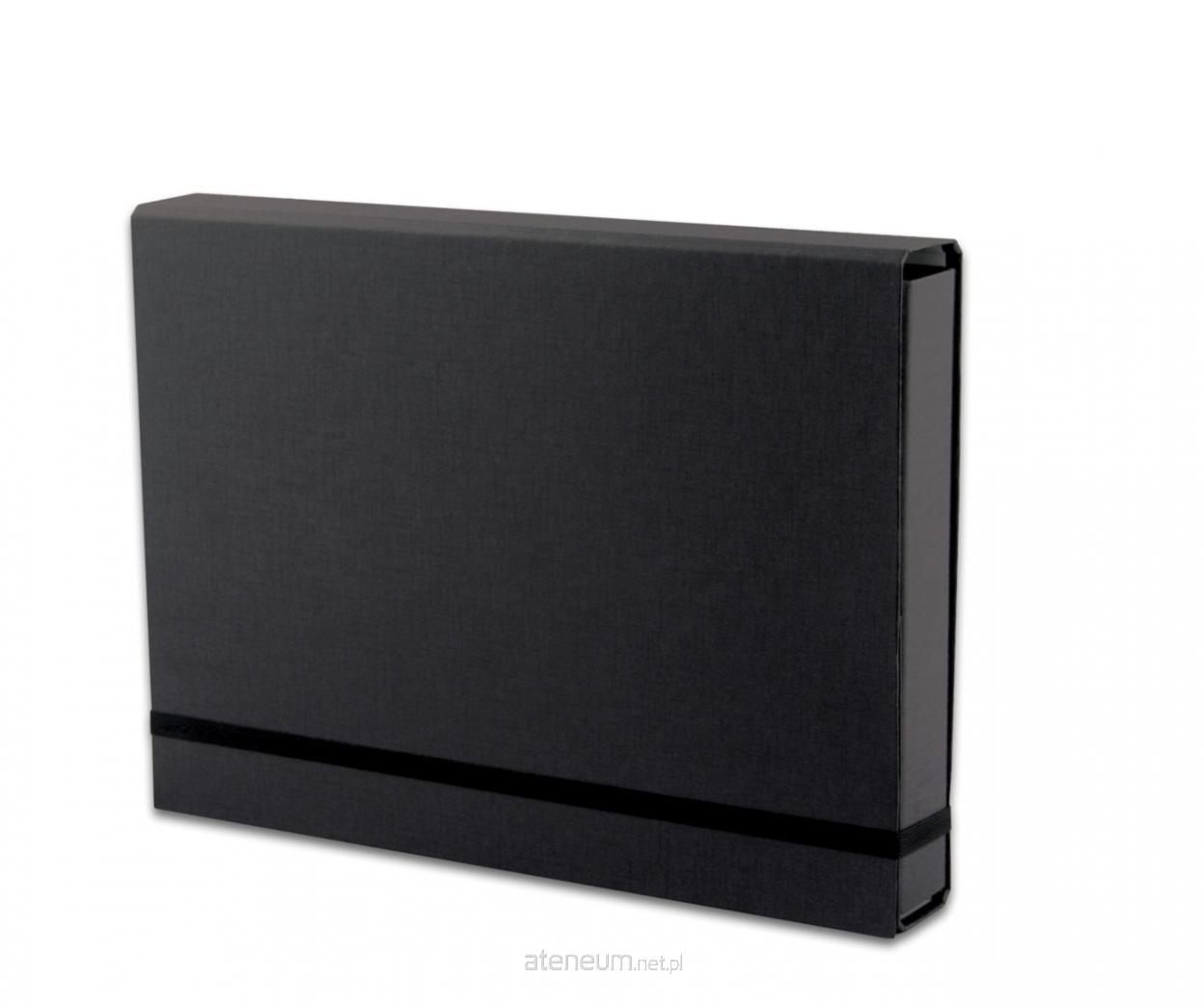 Wykonana z tektury 1,7mm, nitowane boki z okleinowanymi krawędziami zapinana na płaską gumkę 10 mm. Okleina Ecoline mat.. Wymiary w cm; 32X23,5X4,5