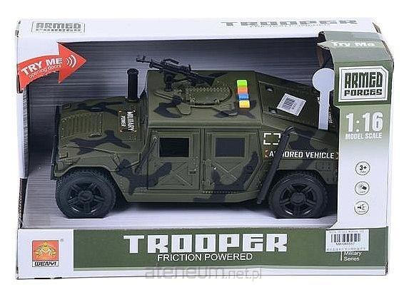 auto wojskowe z napędem na koło zam, światła, dźwięk; 28,5x17,5x13cm, W/B