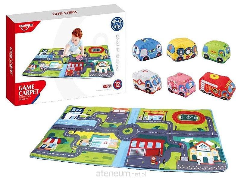 mata z ulicą i autami z materiału, wym.rozłożonej 158x80cm; 35x27x5cm, Box
