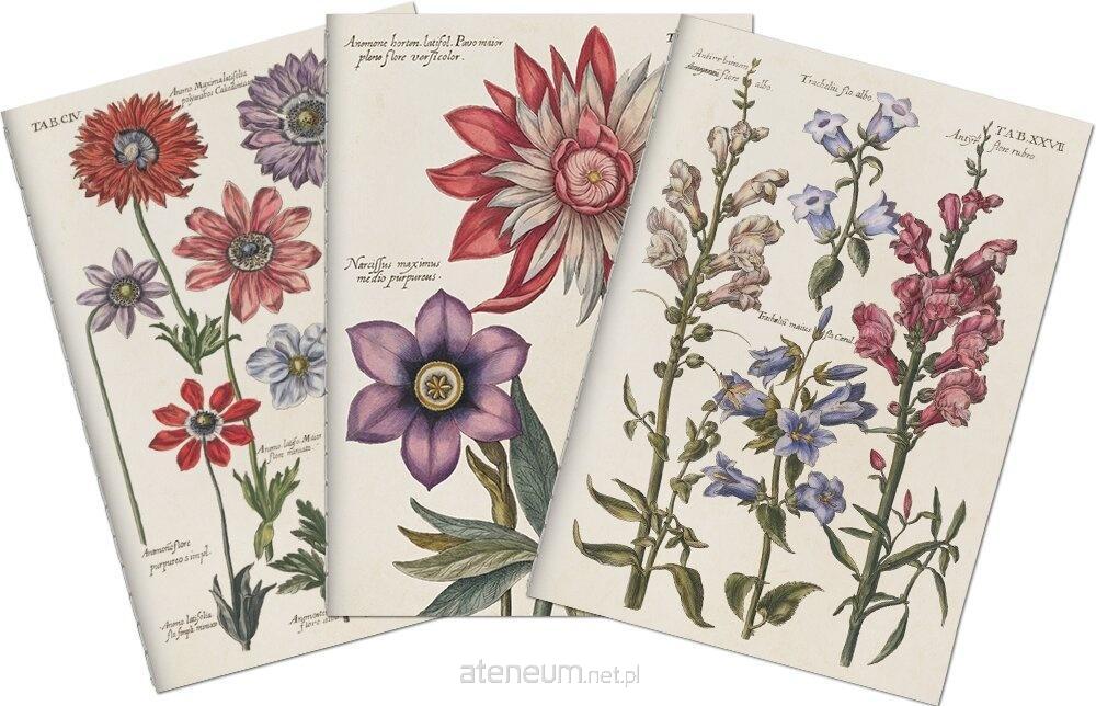 Zestaw 3 ozdobny notatników w formacie A6, złączonych ozdobną wstążką.