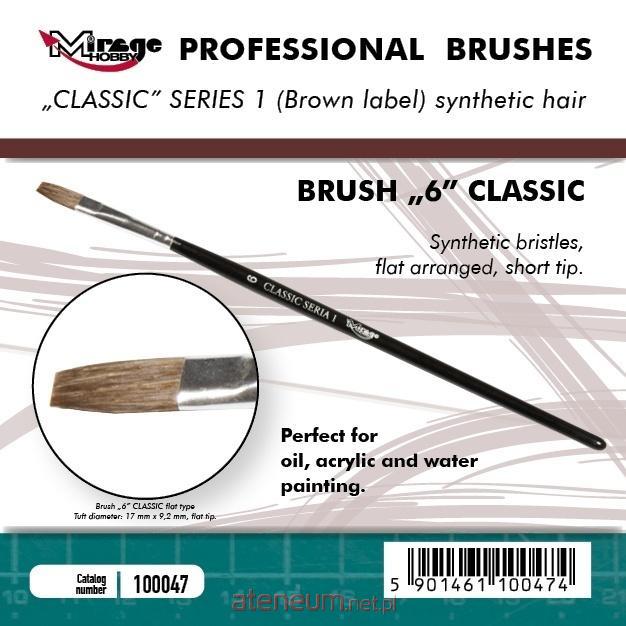 Mirage Hobby Pędzle Płaskie PROFESSIONAL Seria płaskich pędzelków o wysokiej jakości syntetycznym włosiu i krótkim trzonku. Pędzle z serii PROFESSIONAL Seria 1 idealnie nadają się do malowania po różnych powierzchniach, jak i również świetnie poradzą sobie z użyciem w technice \"suchego pędzla\" (DRY BRUSH). Idealne do pracy ze wszelkiego rodzaju farbami akrylowymi, olejnymi, wodnymi etc