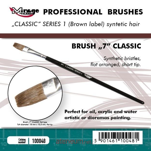 Mirage Hobby Pędzle Płaskie PROFESSIONAL Seria płaskich pędzelków o wysokiej jakości syntetycznym włosiu i krótkim trzonku. Pędzle z serii PROFESSIONAL Seria 1 idealnie nadają się do malowania po różnych powierzchniach, jak i również świetnie poradzą sobie z użyciem w technice \"suchego pędzla\" (DRY BRUSH). Idealne do pracy ze wszelkiego rodzaju farbami akrylowymi, olejnymi, wodnymi etc