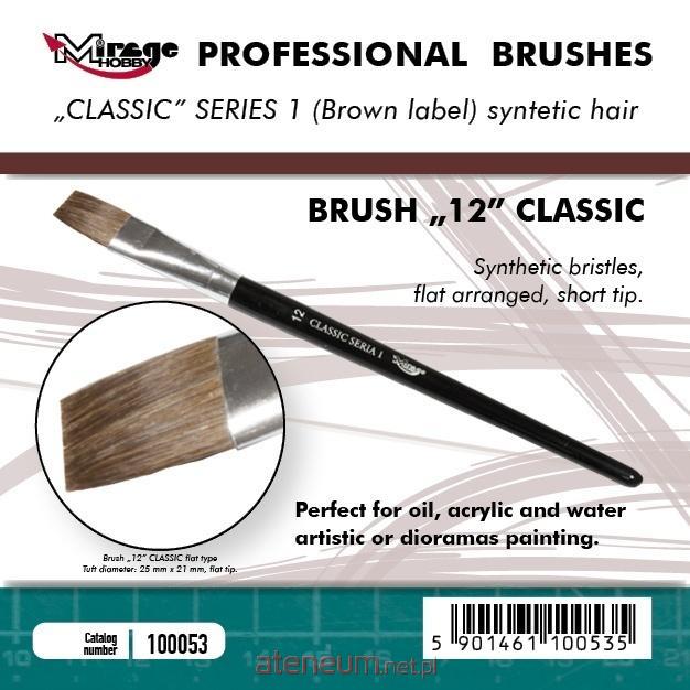 Mirage Hobby Pędzle Płaskie PROFESSIONAL Seria płaskich pędzelków o wysokiej jakości syntetycznym włosiu i krótkim trzonku. Pędzle z serii PROFESSIONAL Seria 1 idealnie nadają się do malowania po różnych powierzchniach, jak i również świetnie poradzą sobie z użyciem w technice \"suchego pędzla\" (DRY BRUSH). Idealne do pracy ze wszelkiego rodzaju farbami akrylowymi, olejnymi, wodnymi etc