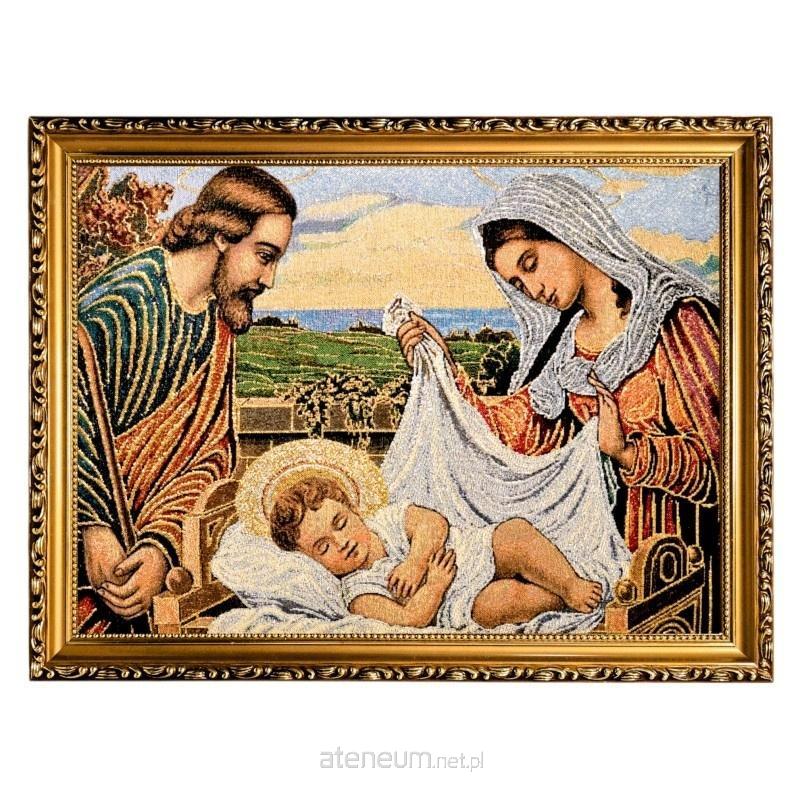Wykonany z dbałością o detale, oddający ciepło i intymność Bożego Narodzenia.Złote nici dodają obrazowi uroczystego i sakralnego charakteru. Elegancka złota rama podkreśla jego piękno i jest gotowa do zawieszenia. To idealny prezent dla osób ceniących duchowe wartości i poszukujących inspiracji w cudzie narodzin Chrystusa.