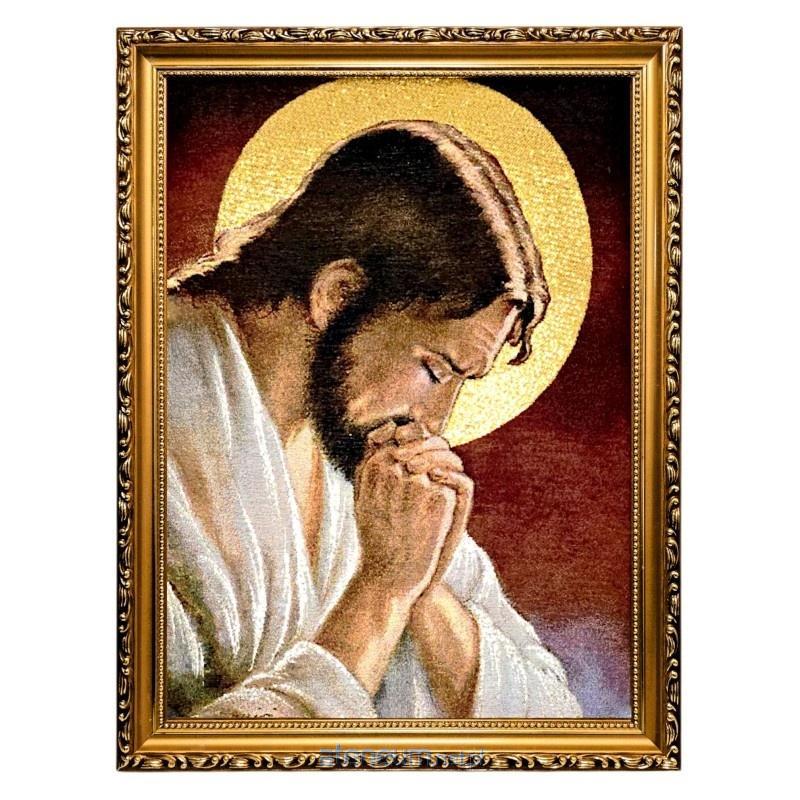 Haftowany Obraz Jezus Pogrążony w Modlitwie w Złotej Ramie - Złote Nici, 42x32 cm