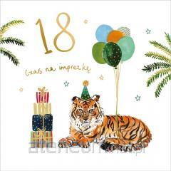 Karnet urodzinowy z życzeniami w środku, złocenie, naklejane elementy oraz naklejki z cyframi do personalizacji wieku