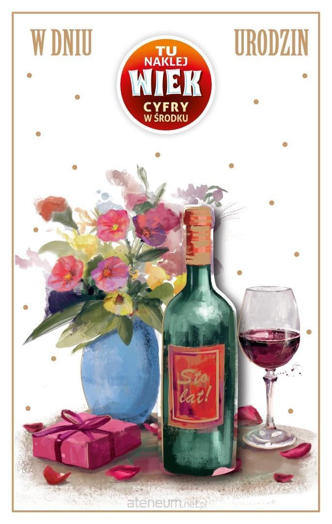 Karnet urodzinowy z życzeniami w środku, złocenie, naklejane elementy oraz naklejki z cyframi do personalizacji wieku