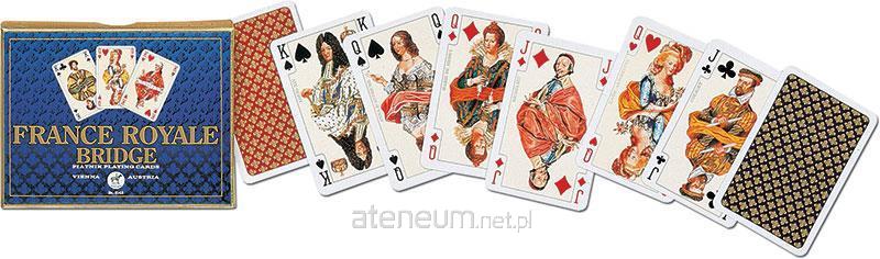 Najwyższej jakości karty do gry renomowanej firmy Ferd. Piatnik & Sohne. W komplecie 2 talie w eleganckim, złoconym pudełku z charakterystyczną Piatnikowską poduszeczką. Na awersach władcy i inne historyczne postaci z Francji. Talie składają się z 55 plastikowanych kart o wymiarach 58 x 89 mm i gramaturze 310. Idealne zarówno do brydża, pokera, remika jak i innych gier. Wyroby wiedeńskiej fabryki Ferd. Piatnik & Sohne od 1824 roku urzekają bogactwem wzorów i perfekcją wykonania. Jakość i tradycja!