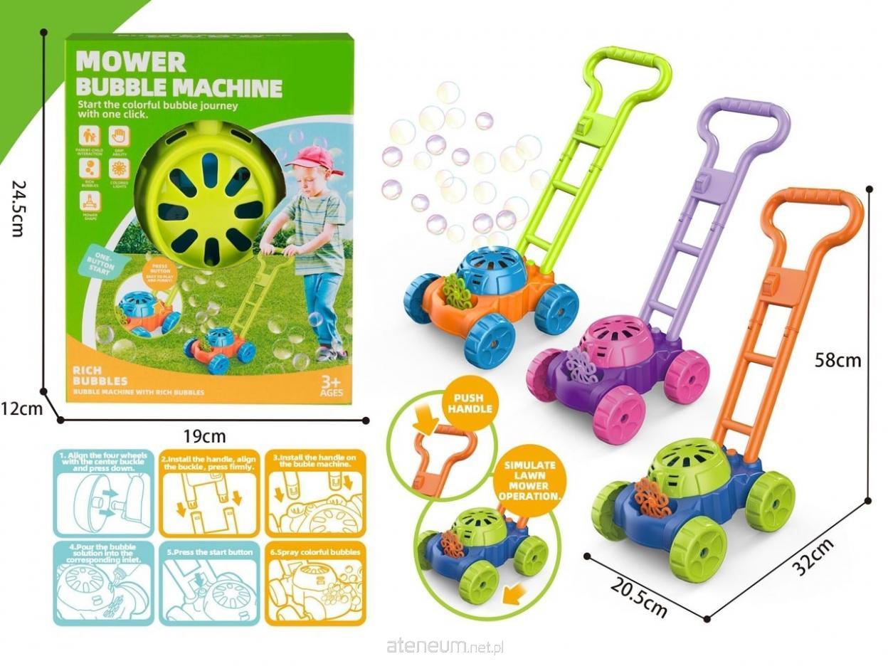 Kolorowa kosiarka na bańki mydlane to fantastyczna zabawka dla dzieci, które uwielbiają aktywną zabawę na świeżym powietrzu. Wystarczy nacisnąć przycisk, aby urządzenie zaczęło wytwarzać mnóstwo kolorowych baniek, imitując przy tym pracę prawdziwej kosiarki. Lekka konstrukcja i wygodny uchwyt sprawiają, że dziecko może swobodnie pchać zabawkę po ogrodzie, podwórku czy tarasie. Zabawka rozwija wyobraźnię, zachęca do ruchu i zapewnia mnóstwo radości podczas zabawy na dworze. Cechy produktu: funkcja wytwarzania baniek mydlanych; realistyczny wygląd kosiarki; wygodna rączka do pchania; łatwa obsługa - przycisk start; wiek: 3+. Wymiary kosiarki: wysokość: 58 cm; długość: 32 cm; szerokość: 20,5 cm. Wymiary opakowania: 24,5 cm x 19 cm x 12 cm. Idealny pomysł na prezent dla małego ogrodnika i miłośnika baniek mydlanych!