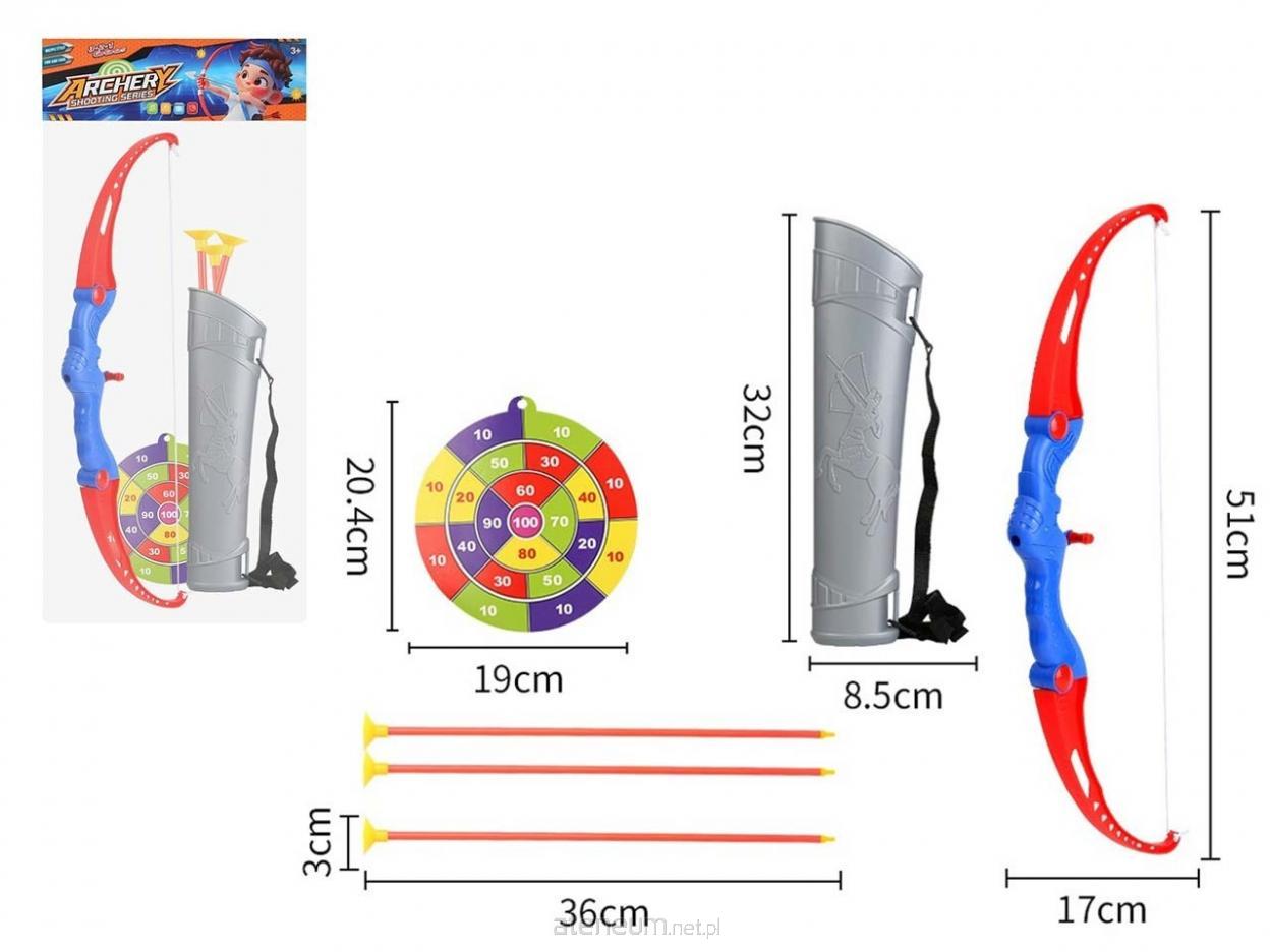 Kompletny zestaw łuczniczy dla dzieci, który pozwala rozpocząć przygodę ze strzelaniem do celu. W zestawie znajduje się lekki łuk, trzy strzały z bezpiecznymi przyssawkami, kolorowa tarcza oraz praktyczny kołczan z paskiem na ramię. Idealny do zabawy w domu i na świeżym powietrzu. Zabawa łukiem rozwija koncentrację, precyzję, koordynację ręka-oko oraz zachęca do aktywności ruchowej. Zawartość zestawu: 1 łuk; 3 strzały z przyssawką; 1 tarcza; 1 kołczan z paskiem. Wymiary: Łuk: 51 cm (wysokość) 17 cm (szerokość); Strzała: 36 cm długości, przyssawka 3 cm; Tarcza: 20,4 cm wysokości 19 cm szerokości; Kołczan: 32 cm wysokości 8,5 cm szerokości. Produkt przeznaczony dla dzieci powyżej 3. roku życia.